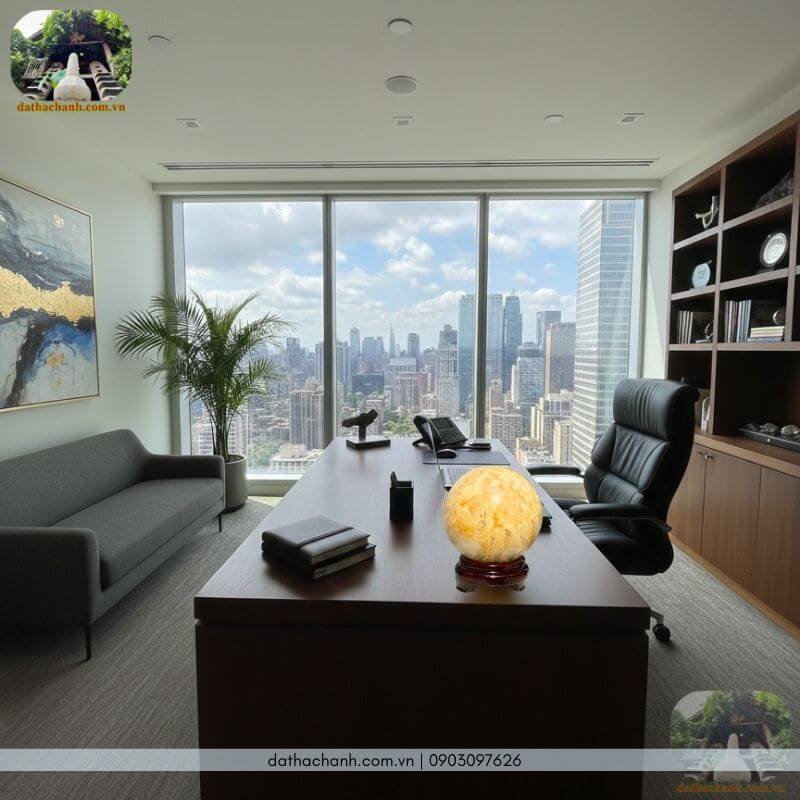 – Trên bàn làm việc: Đặt ở hướng Đông Bắc hoặc Tây Nam của bàn làm việc (hướng của hành Thổ) sẽ giúp trí tuệ minh mẫn, tăng sự tập trung, đưa ra những quyết định kinh doanh sáng suốt và mở rộng các mối quan hệ đối tác.