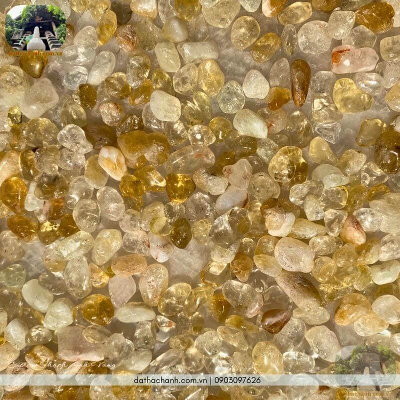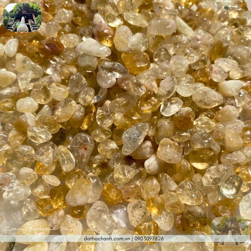 Bên cạnh các vật phẩm dạng khối, đá thạch anh vàng vụn tại Nhà Sàn rất được các chủ nhà và nhà thầu ưa chuộng nhờ tính ứng dụng cao trong việc trấn trạch và chiêu tài.