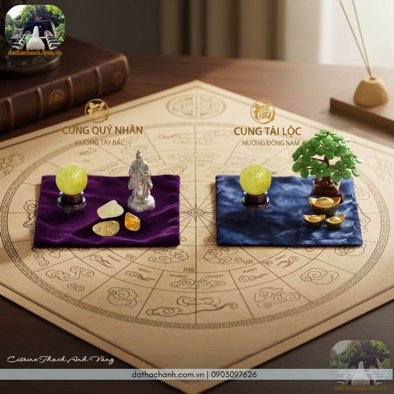 – Đặt hũ tài lộc: Cho đá vụn vào hũ thủy tinh đặt tại quầy thu ngân, ban thờ Thần Tài hoặc góc Đông Nam của phòng khách để tụ khí, giữ tiền của không bị thất thoát.