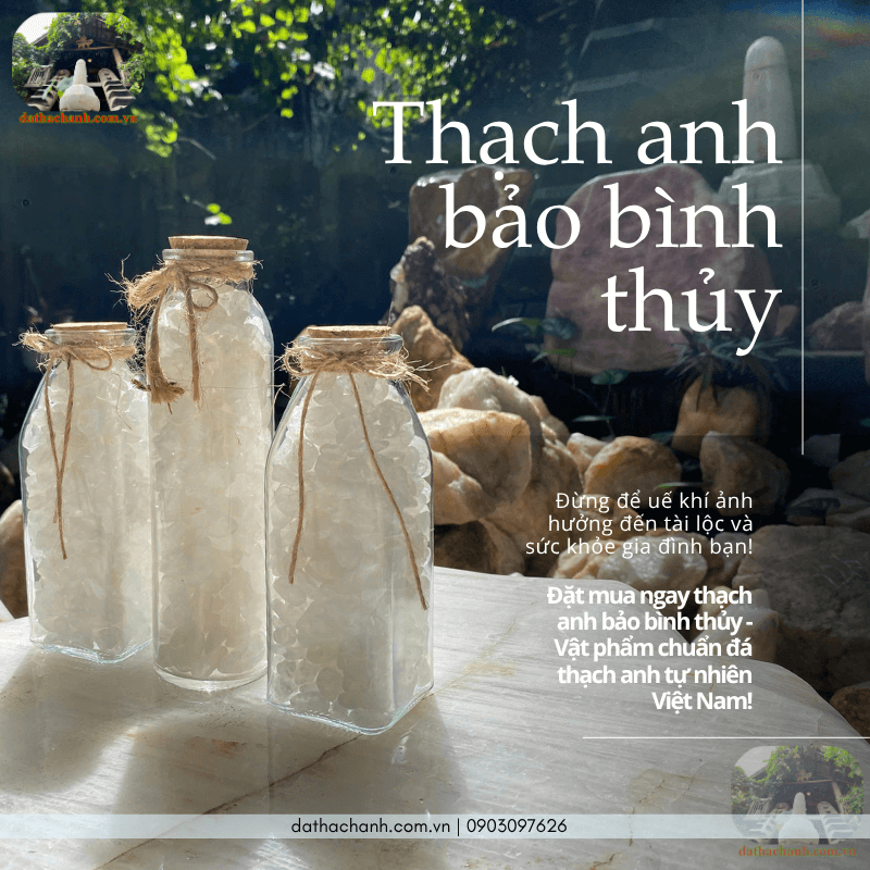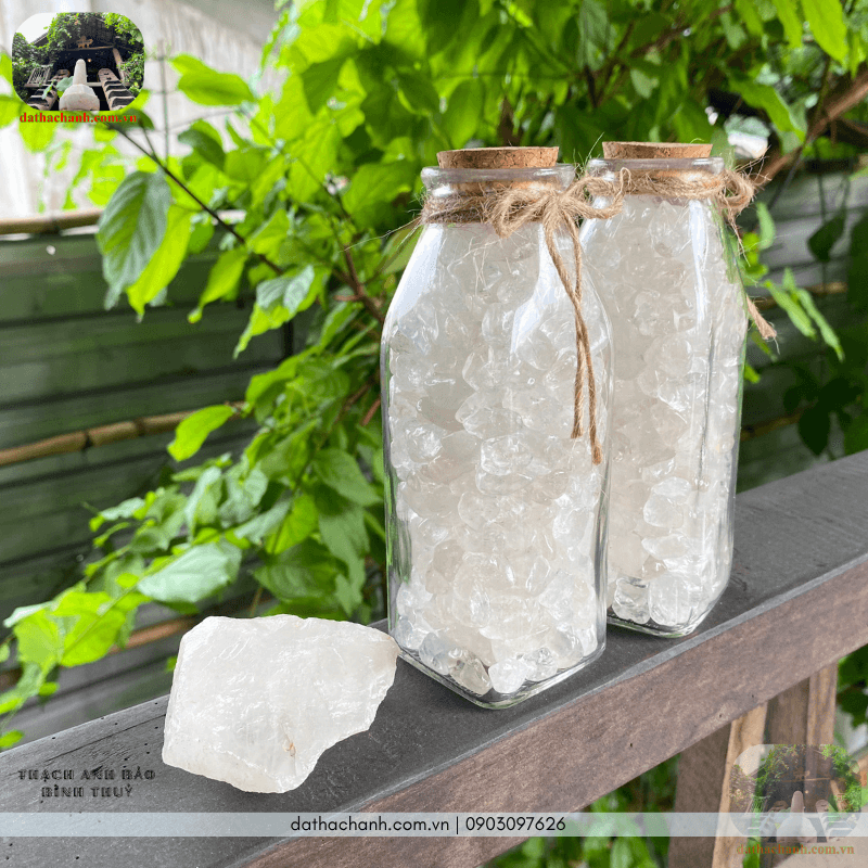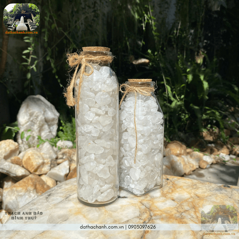 – Bình chứa: Vật dụng chứa đựng (bình thủy tinh, hũ gốm sứ) vừa tạo tính thẩm mỹ, vừa là nơi để năng lượng Thủy – Thạch anh phát huy tác dụng.
