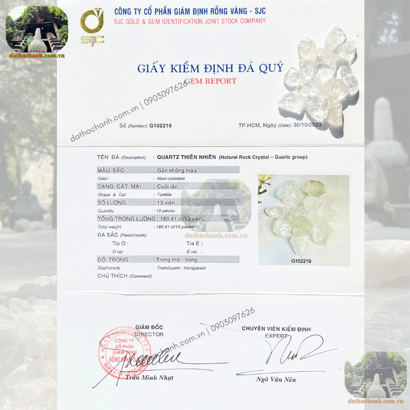 – Mua tại cơ sở uy tín có bảo hành, cam kết đá thật: Đặc biệt là đơn vị có thể cung cấp giấy kiểm định chất lượng (kiểm định đá quartz tự nhiên 100%) như kho đá phong thủy Nhà Sàn, để chuyên gia và gia chủ hoàn toàn yên tâm về năng lượng pháp khí.