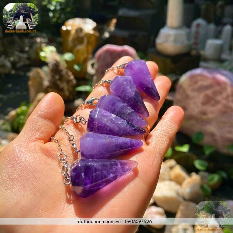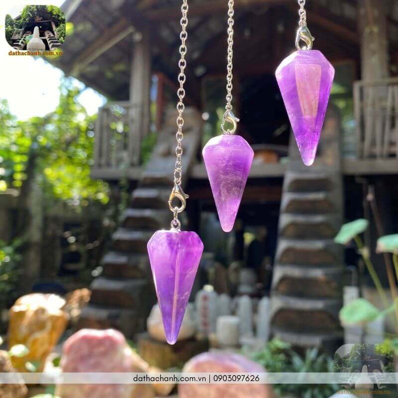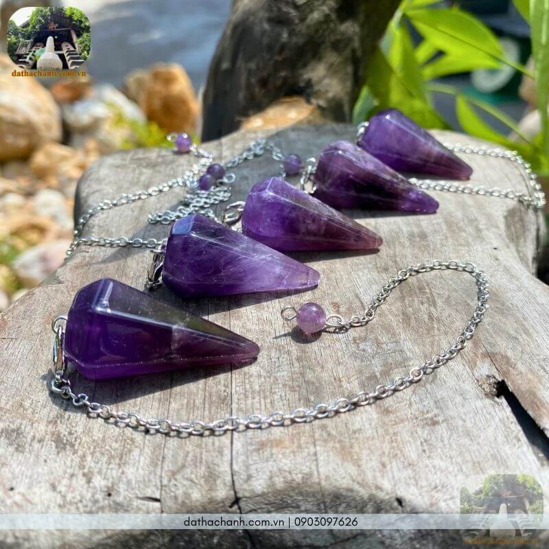 – Con lắc thạch anh tím: Viên đá của luân xa vương niệm (đỉnh đầu). Con lắc thạch anh tím cực kỳ tuyệt vời cho những ai thực hành thiền định, Tarot, Reiki hoặc cần đo lường những vấn đề liên quan đến trực giác và tâm linh sâu sắc.