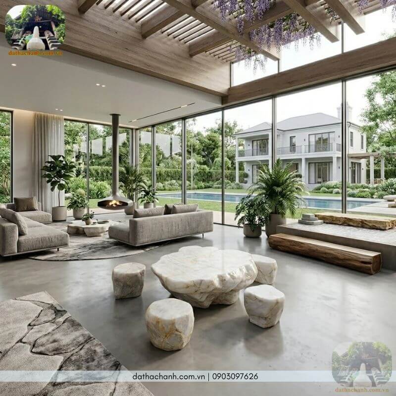 Đôn đá tự nhiên có vẻ đẹp tự nhiên, độc đáo, tạo nên điểm nhấn ấn tượng cho không gian.
