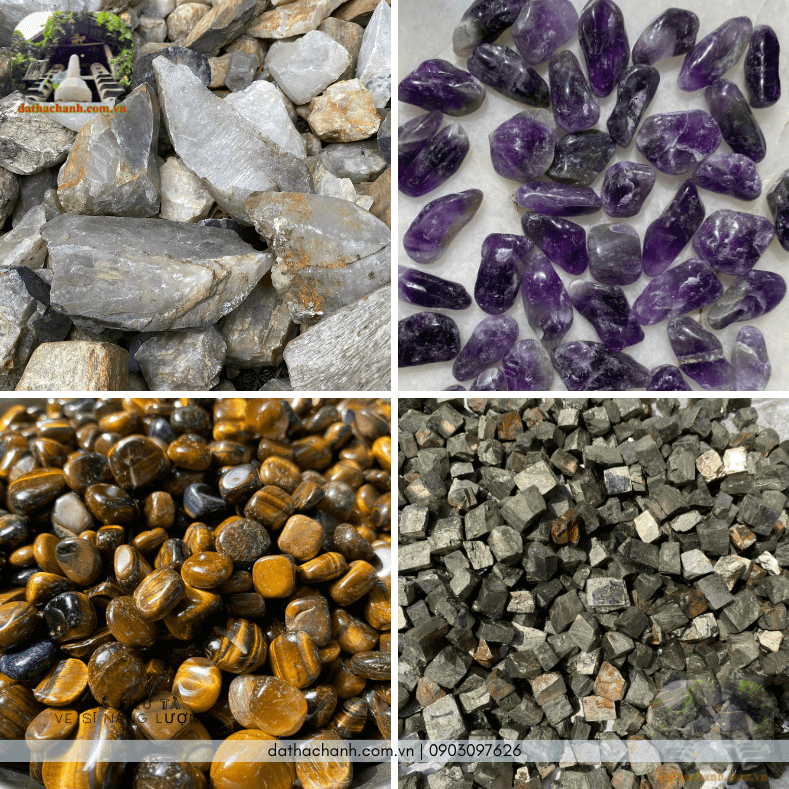 – Đá vàng găm (Pyrite): Trừ tà và bảo vệ, đồng thời tỏa ra năng lượng của sự giàu có và thịnh vượng.