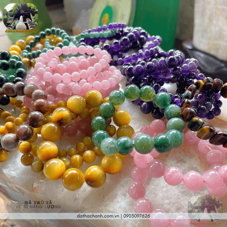 – Mộc, Hỏa: Xanh lục, tím, đỏ, hồng (thạch anh tím, thạch anh khói, Tourmaline).
