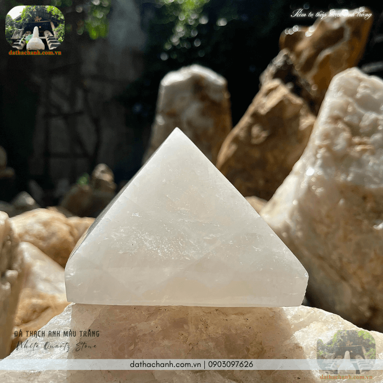 Hình khối mạnh mẽ giúp tích tụ và phát tán năng lượng vũ trụ. Kim tự tháp thạch anh trắng có khả năng thanh lọc không khí, hóa giải tà khí, tăng cường sinh khí và hỗ trợ thiền định sâu hơn.