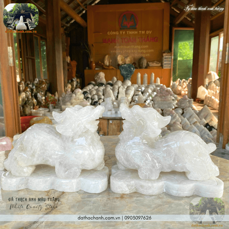Tỳ hưu đá thạch anh màu trắng là linh vật chiêu tài, giữ lộc nổi tiếng. Tỳ hưu chế tác từ đá thạch anh màu trắng mang ý nghĩa bảo vệ gia sản, xua đuổi tà ma, giúp công việc kinh doanh phát đạt và mang lại sự bình an cho gia chủ.