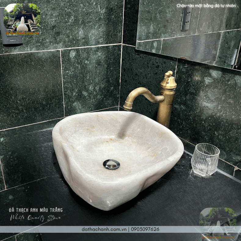Chậu rửa đá thạch anh màu trắng – tuyệt tác nguyên khối Tây Nguyên cho không gian tắm đẳng cấp. Thanh lọc khí xấu, mang lại năng lượng thuần khiết và minh mẫn cho gia chủ. Nâng tầm phòng tắm thành nơi thư giãn phong thủy!