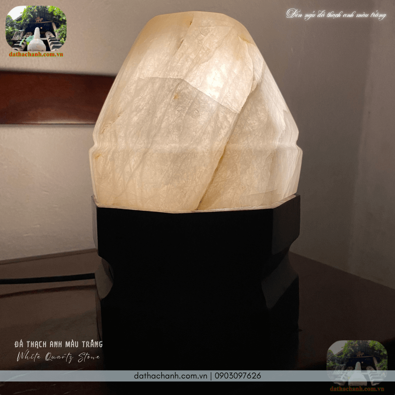 Đèn ngủ chế tác từ đá thạch anh màu trắng tự nhiên là sự kết hợp hoàn hảo giữa vẻ đẹp tinh tế và năng lượng phong thủy thuần khiết. Ánh sáng dịu nhẹ xuyên qua khối đá giúp thư giãn tinh thần, xua tan căng thẳng, mang lại cảm giác bình yên, hỗ trợ giấc ngủ sâu và ngon hơn. Vật phẩm còn có tác dụng thanh lọc không khí, xua đi năng lượng tiêu cực và thu hút may mắn, tài lộc cho gia chủ.