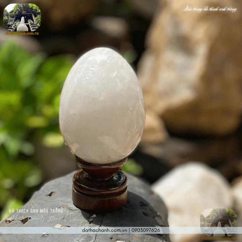 Quả trứng đá thạch anh màu trắng tượng trưng cho sự khởi đầu mới, sinh sôi này nở. Quả trứng đá thạch anh màu trắng mang lại sự tươi mới, thuần khiết, giúp nuôi dưỡng ý chí, và hỗ trợ cho những dự định, kế hoạch phát triển cá nhân hoặc công việc.