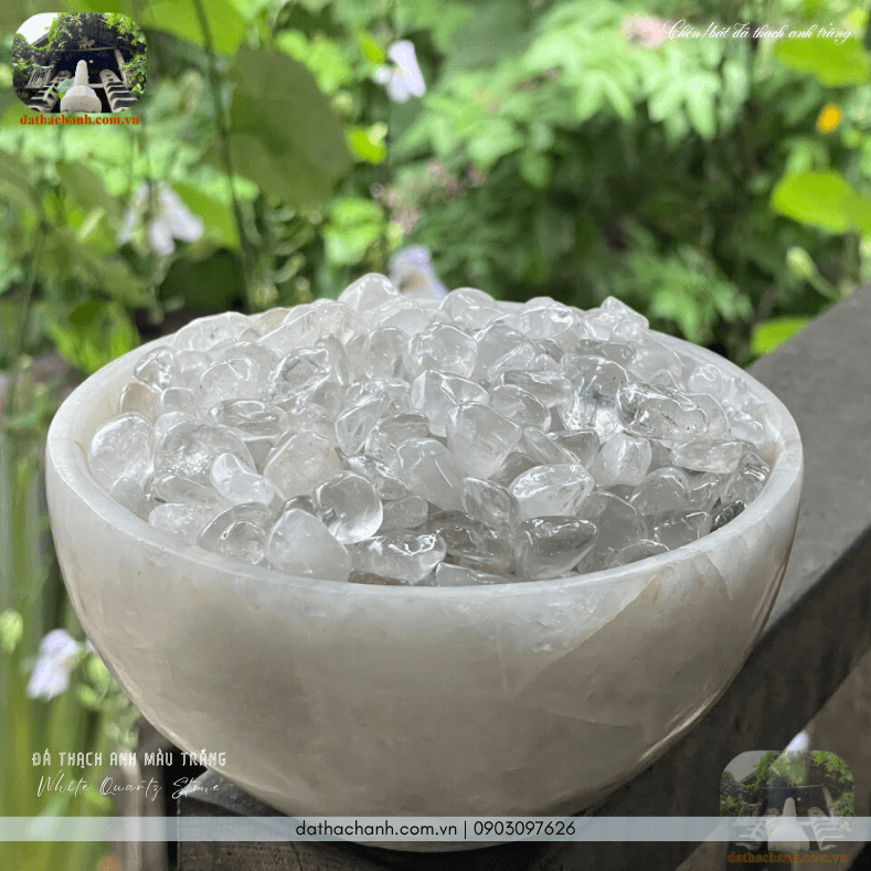 Dùng để làm bát nước thả hoa, bát nước minh đường, gạo hoặc tiền xu. Chén/bát đá thạch anh màu trắng mang ý nghĩa tích trữ tài lộc, thể hiện sự kính trọng đối với tinh thần, và giúp thanh tẩy vật phẩm phong thủy khác hiệu quả.