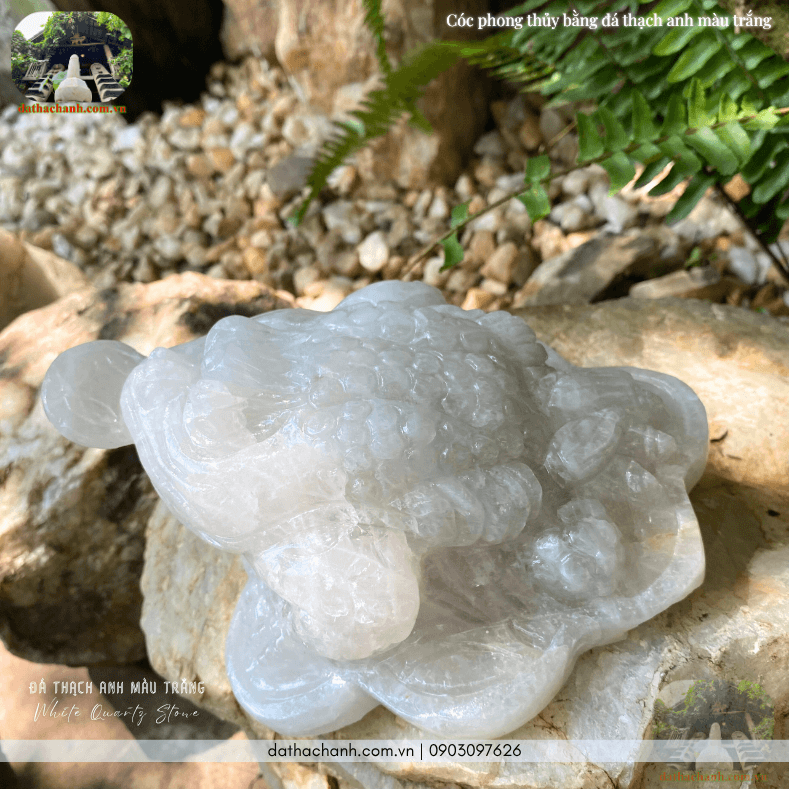 Linh vật hút tài lộc vào nhà, giữ của. Cóc phong thủy đá thạch anh màu trắng giúp gia chủ làm ăn phát đạt, tiền bạc sung túc, và xua đi vận rủi, mang lại nguồn năng lượng thịnh vượng, may mắn.