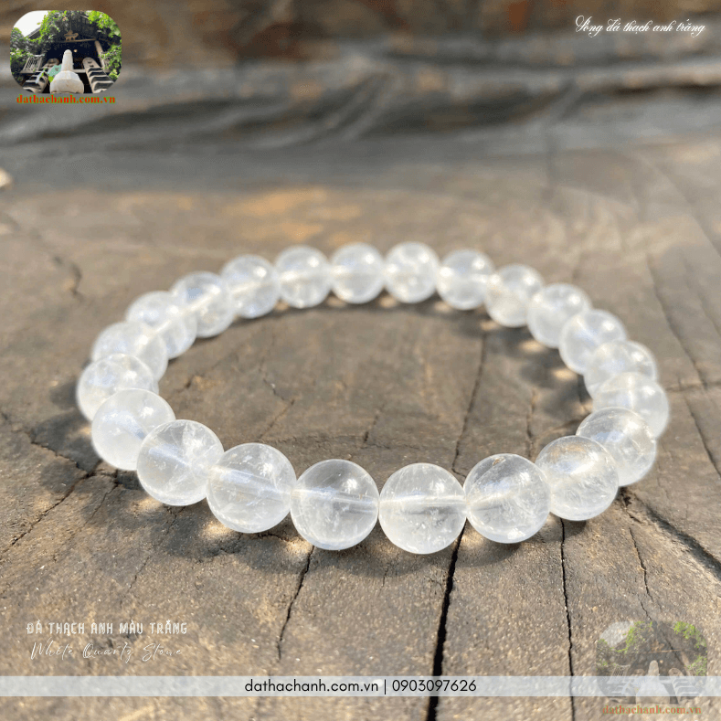 Vòng đeo tay đá thạch anh màu trắng là trang sức phong thủy mang lại sự thuần khiết. Vòng đá trắng giúp thanh lọc cơ thể, giảm căng thẳng, tăng cường năng lượng tích cực và là vật phẩm hộ mệnh mang lại sự bình an cho người đeo.