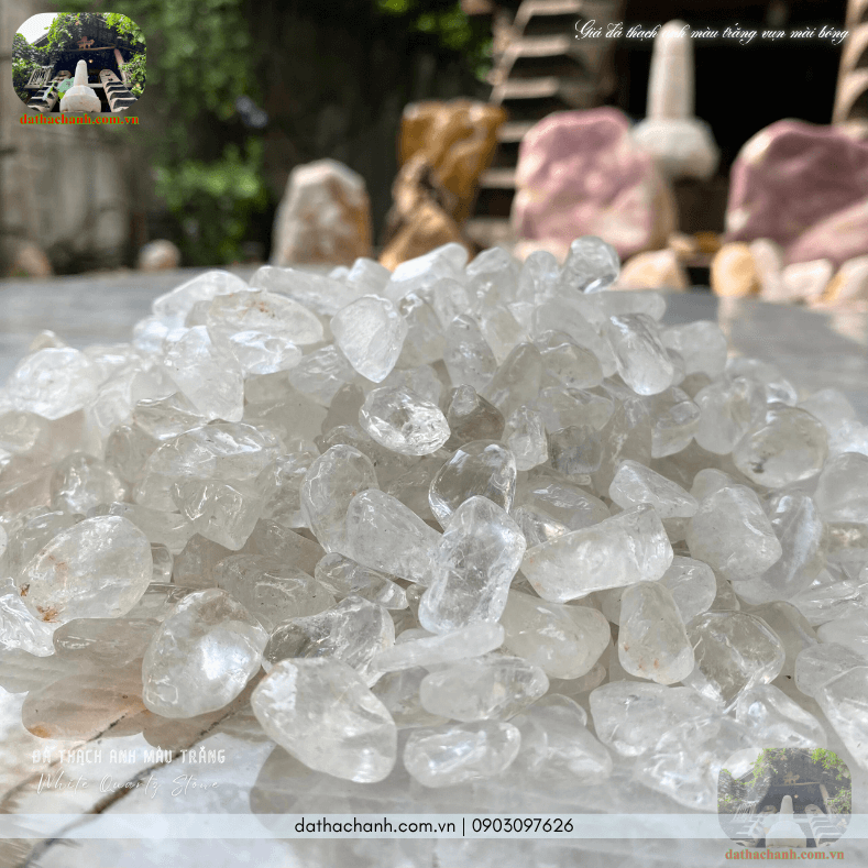Đá thạch anh màu trắng đã mài bóng có giá 220.000đ/kg.